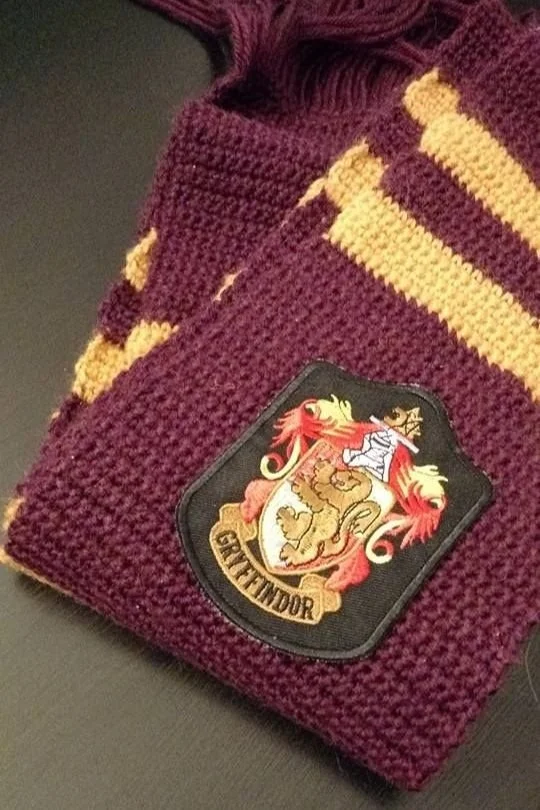 One of my early projects was a Harry Potter-themed scarf in Gryffindor colors, which I customized with a Gryffindor patch I bought online. This was a special project to me because it was personal, and reflected my interests at the time.