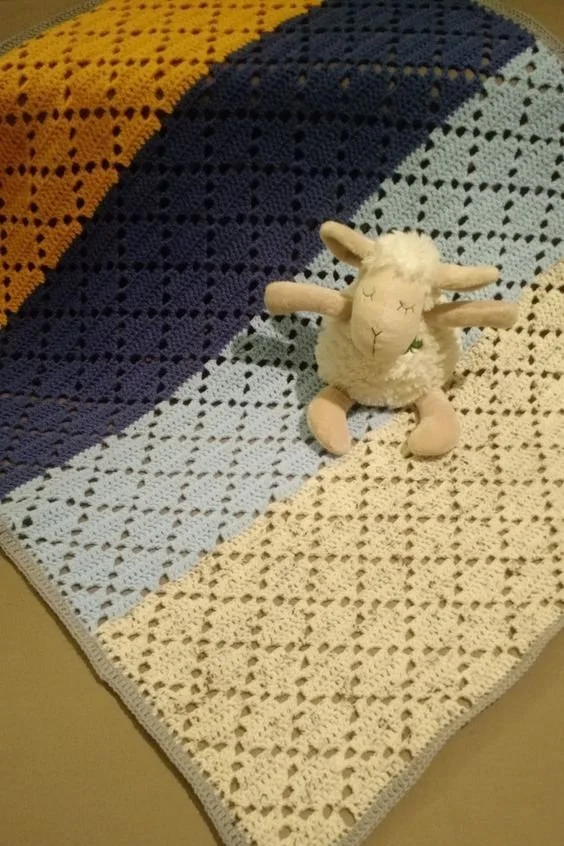 A baby blanket I crocheted for a friend of mine when she was having her first child, using some of her favorite colors.
